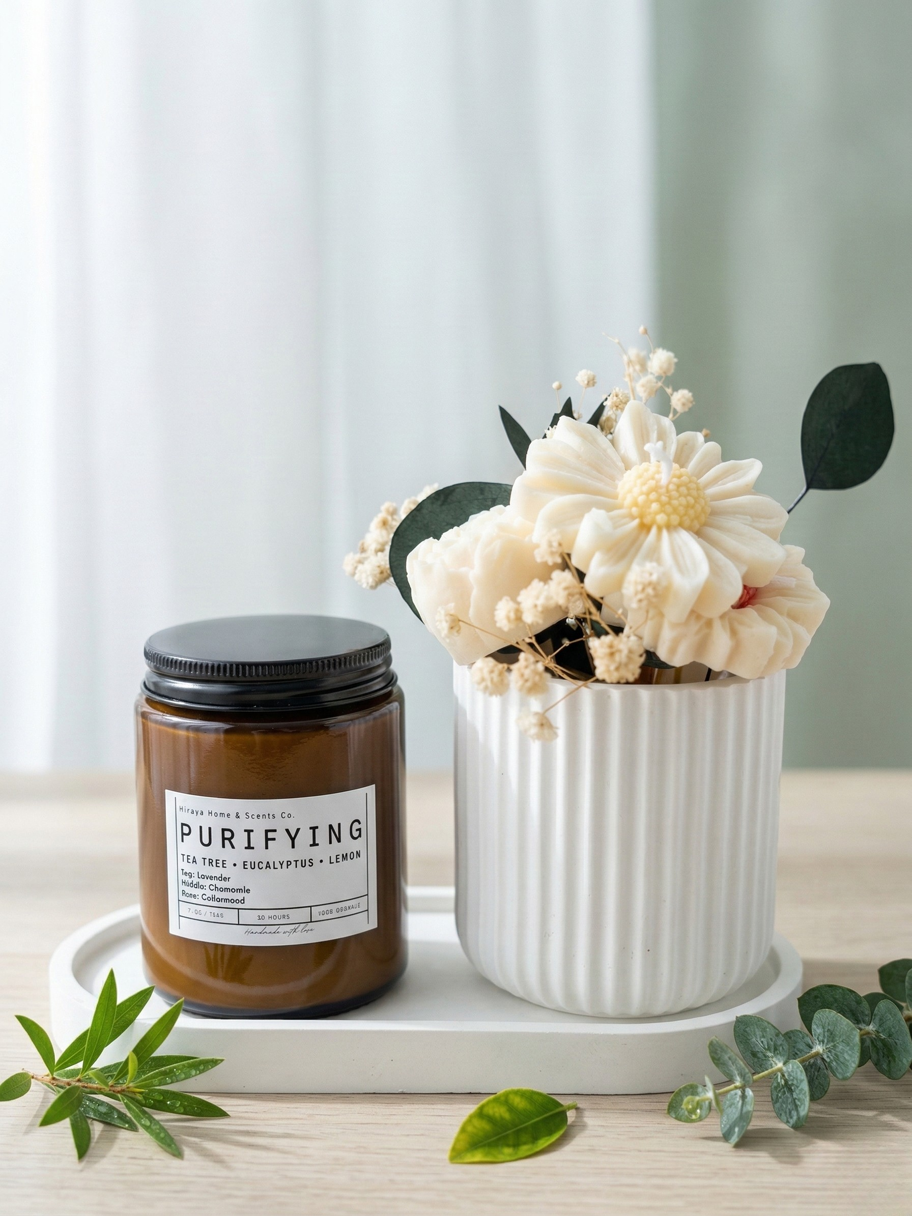 Crafted with Tea Tree, Eucalyptus, and Lemon, Purifying is designed to refresh your space and reset your senses. Tea Tree cleanses the air and clears the mind, Eucalyptus opens the breath and brings a cooling calm, and Lemon brightens the blend with crisp, uplifting energy — creating a scent that feels like stepping into clean air after rain.