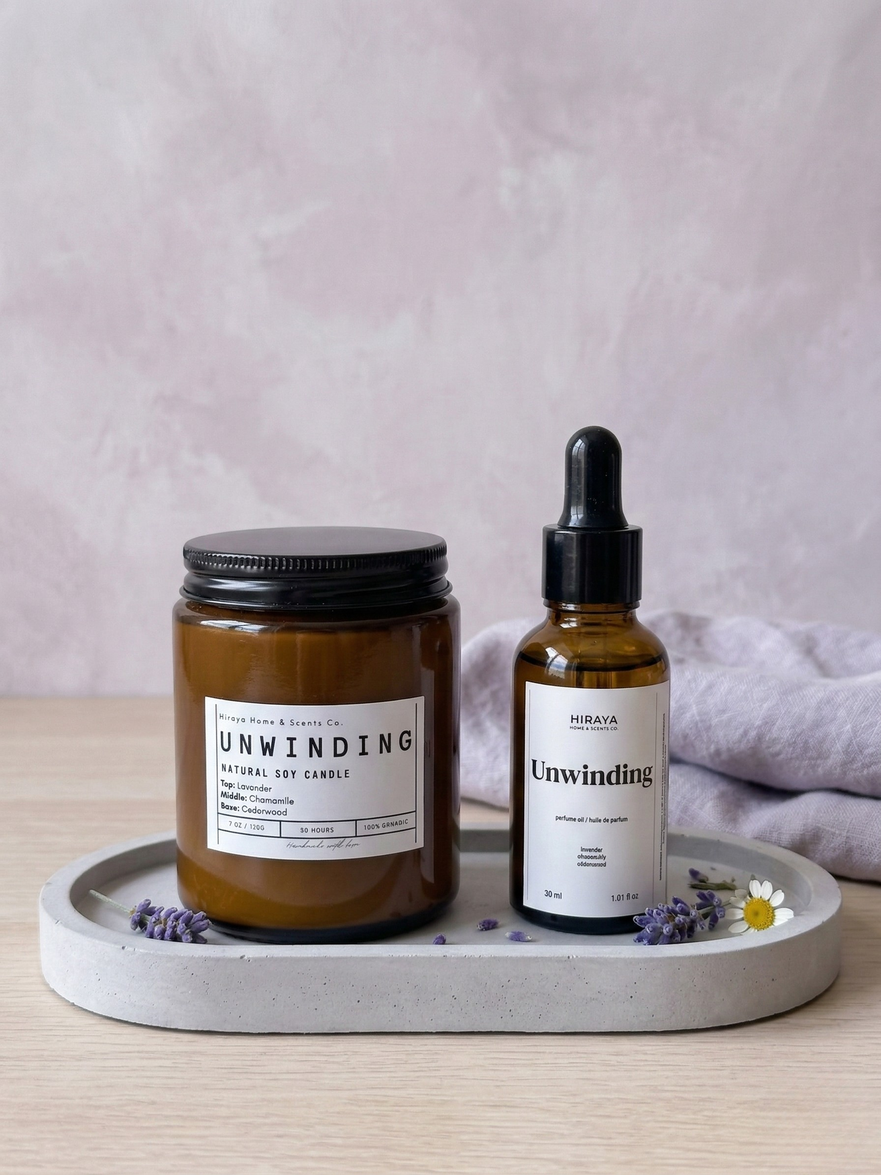 Ease into the evening with our Unwinding Candle + Unwinding Fragrance Oil Set, crafted to help your mind slow down and transition into rest. Lavender and chamomile bring gentle calm, while cedarwood adds a grounding, soothing finish.